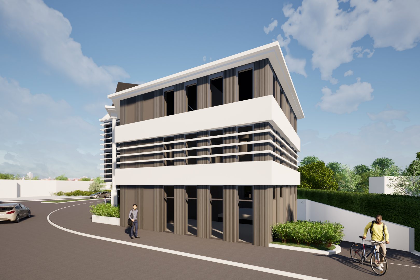 Ainsi, le projet allie rénovation énergétique et modernisation architecturale, valorisant le bâtiment tout en respectant son gabarit et son intégration urbaine. Il affirme une identité contemporaine sobre et élégante, renforçant sa visibilité et sa fonctionnalité au sein du quartier.
