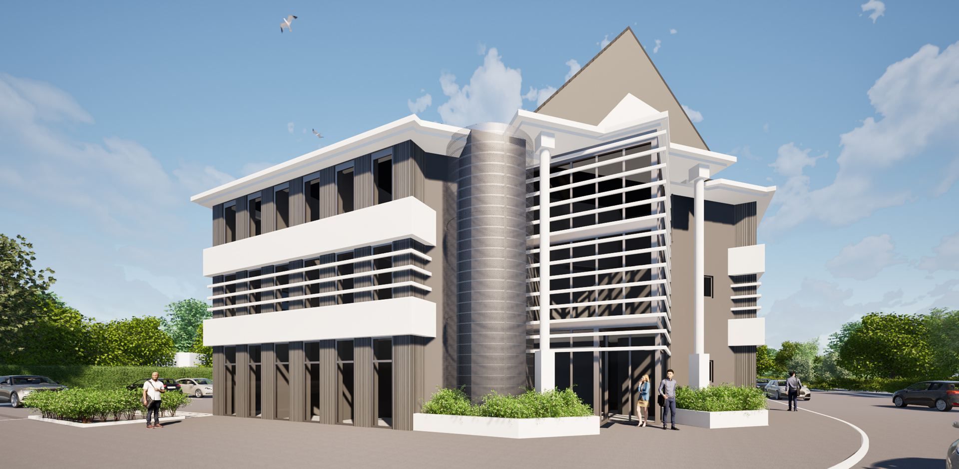 Ainsi, le projet allie rénovation énergétique et modernisation architecturale, valorisant le bâtiment tout en respectant son gabarit et son intégration urbaine. Il affirme une identité contemporaine sobre et élégante, renforçant sa visibilité et sa fonctionnalité au sein du quartier.