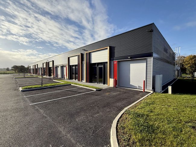 Le projet prévoit la construction de trois bâtiments d’activités. Ils sont implantés perpendiculairement à la départementale et à la voie d’accès permettant de créer des axes visuels traversants. L’espace entre les bâtiments intègre des espaces de circulation, de stationnement, d’accès aux cellules et des espaces verts. Une ceinture verte périphérique permet de traiter la transition…