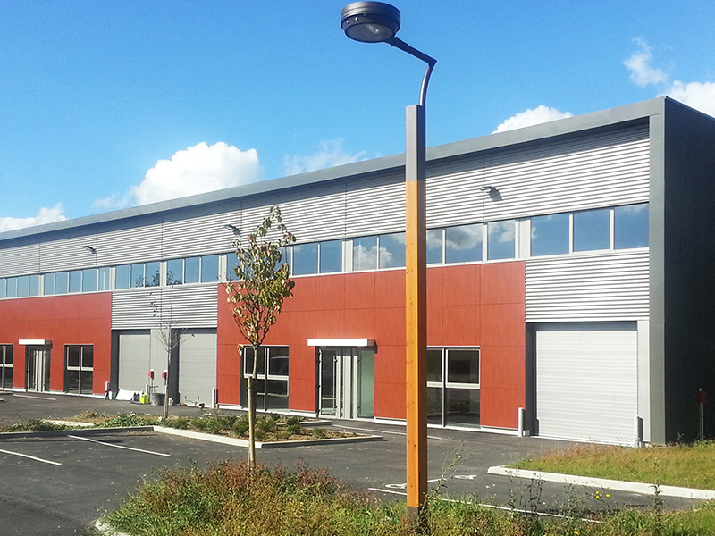 Le projet a permis la réalisation d’un bâtiment d’activités comportant trois cellules indépendantes avec chacune une partie entrepôt et une partie bureaux. L’architecture de l’ouvrage est très épurée. Deux volumes marquent l’entrée de la parcelle et organisent l’espace. Les deux volumes génèrent un jeu de composition grâce à leurs échelles différentes et à leur contraste…