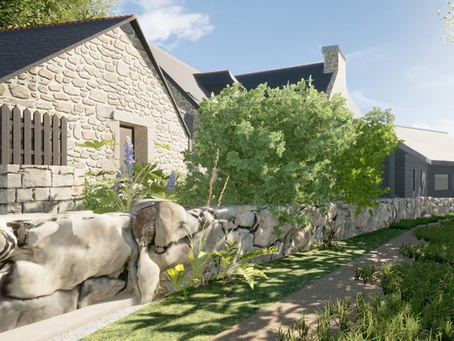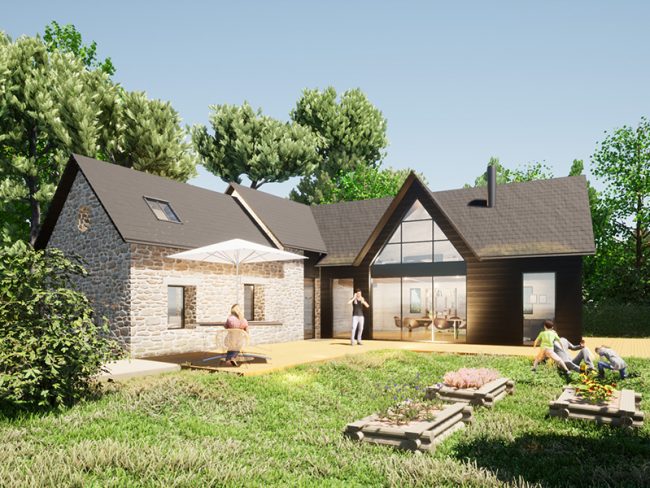 Le projet propose une revalorisation de la fermette traditionnelle existante en pierre. Deux petits volumes gravitent autour de la maison principale. L’objet du projet est d’intégralement rénover cet ensemble et de créer du lien entre les espaces grâce à deux extensions contemporaines qui permettent une lecture plus cohérente du site. L’utilisation d’un bardage bois noir…