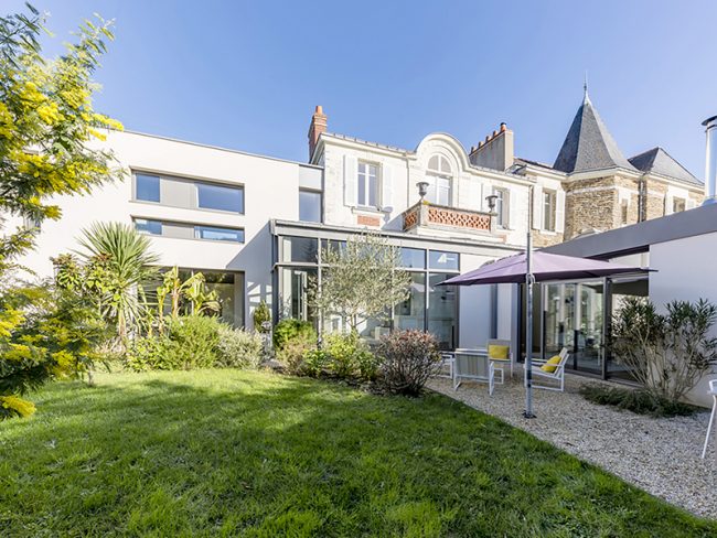 Le projet prévoit la renovation et l’extension d’une maison individuelle de type nantaise sur deux niveaux. L’environnement du projet est dense et heteroclite marqué de différentes époques (néo-gothique, néo-Classique, art déco, contemporain…). Sa façade Nord est épurée contrairement aux façades Sud et Ouest dessinées dans un style néo-Classique. La façade Sud est composée d’un édicule…