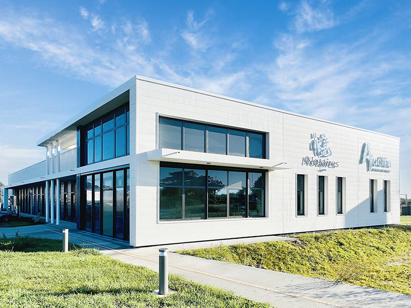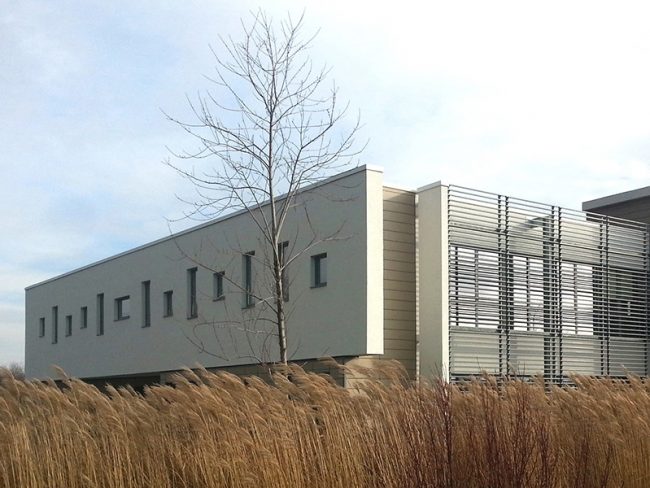 Ce projet de bureau consiste en l’imbrication de trois volumes : deux blocs horizontaux tenus par un élément vertical. Les volumes se fusionnent et se lient avec un jeu de matériaux qui se retournent sur les différentes façades. L’architecture se veut épurée par ses volumes et composée par ses façades. Le projet permet de créer…
