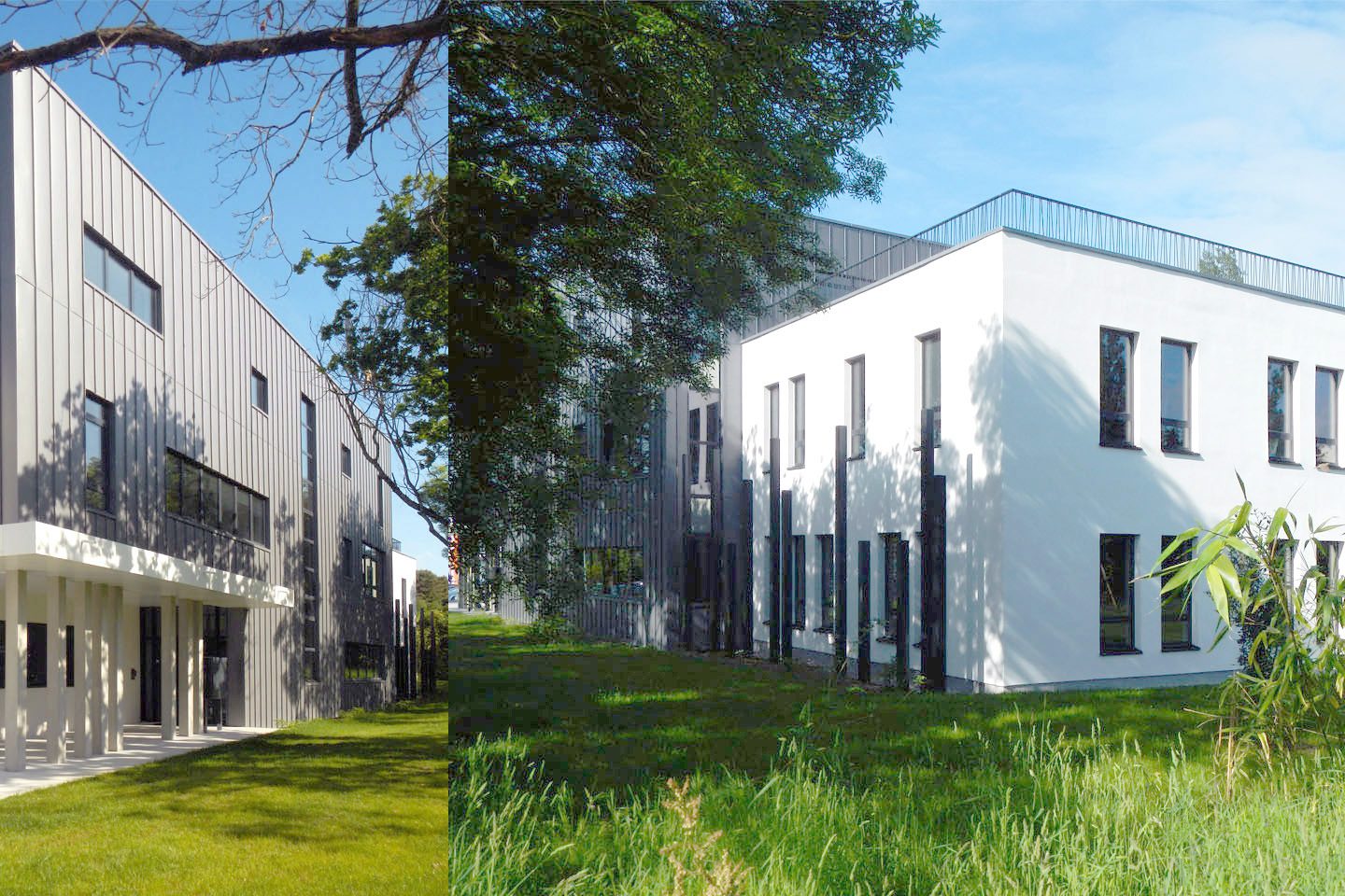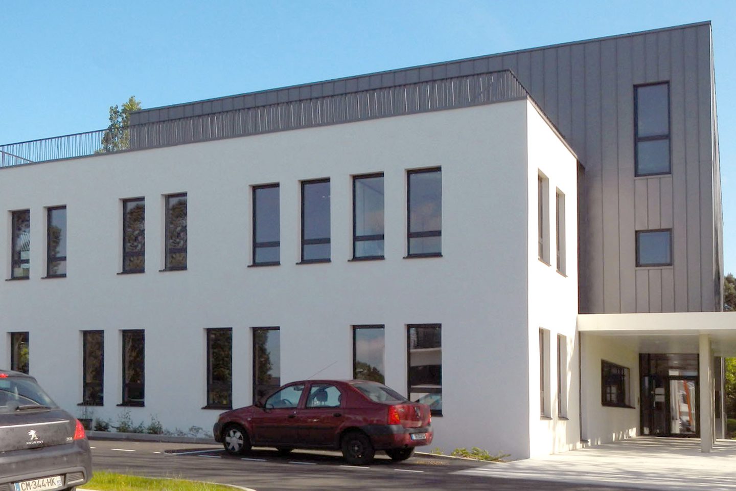 Ce projet de bureaux est l’expression d’une architecture simple par deux volumes qui se télescopent. Ils se développent sur quatre niveaux dont un sous-sol. La composition des façades tient compte de l’environnement du projet et de son fonctionnement. La façade sur rue est traitée dans un langage classique. À l’inverse, la façade Sud-Est du volume secondaire vient marquer l’entrée du bâtiment et propose un jeu de composition au travers d’ouvertures verticales et horizontales.