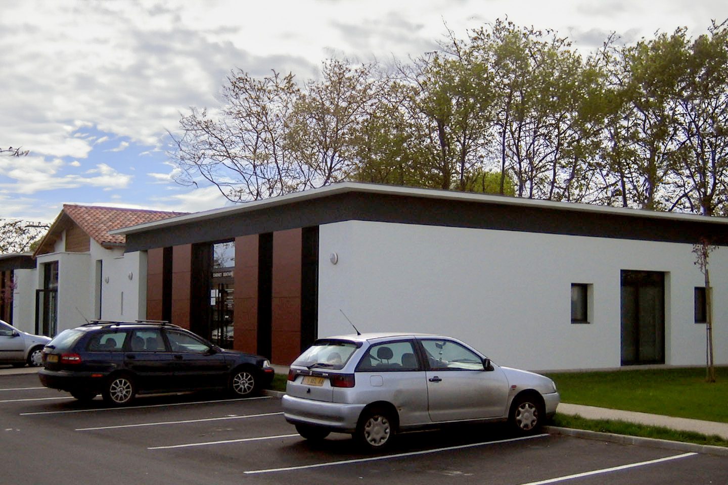 Ce projet répond aux contraintes particulières d’un centre médical : il s’agit de regrouper sept entités différentes et dotées d’accès autonomes sur un même terrain. Adossés à l’espace boisé en bordure de site, les deux modules contigus reprennent un même langage architectural centré sur la symétrie. Au jeu vertical des fenêtres toute hauteur, répond la ligne horizontale de la corniche surmontée de coiffes de tuiles. Comme un clin d’œil à l’architecture classique de la ville de Clisson.