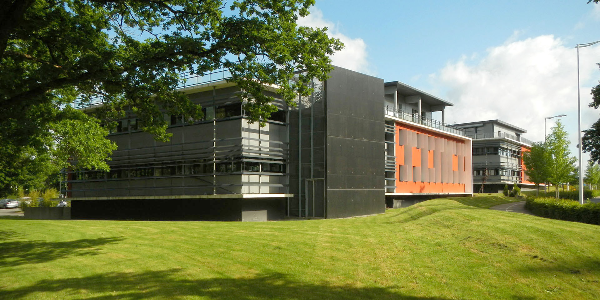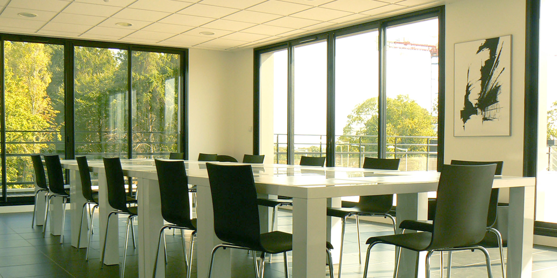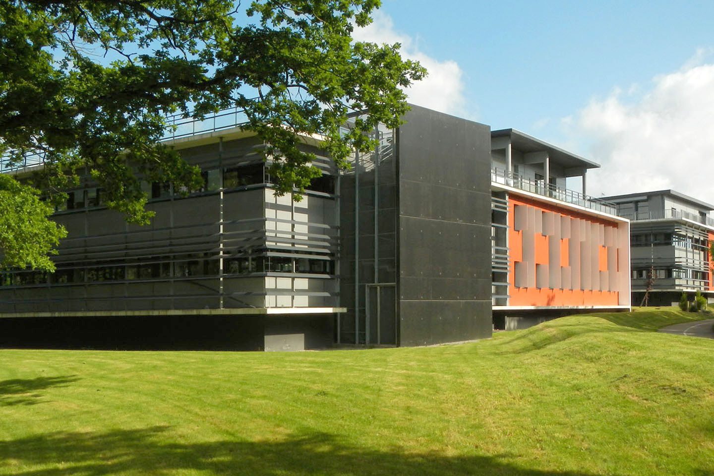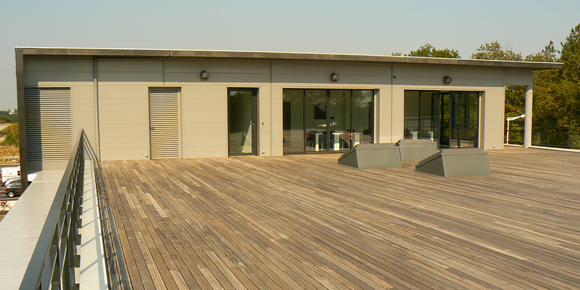 Ce projet de deux bâtiments de bureaux est un proche voisin du Zénith de Nantes. L’agence a choisi d’exploiter les rapports de force pour lier la construction et son environnement naturel. Malgré sa masse apparente, le bâtiment surplombe le sol sur lequel il semble être venu se poser. Imbriqués verticalement, les volumes annexes accentuent l’ancrage de l’ouvrage, tandis que les courbes vertes des pelouses contrastent avec la ligne blanche des façades.