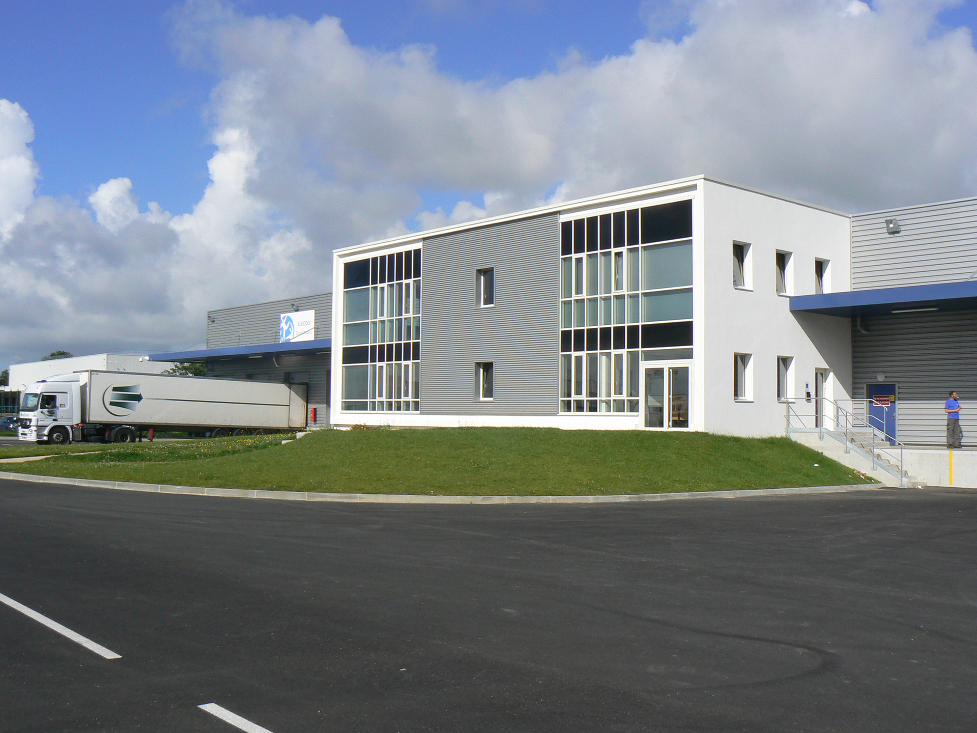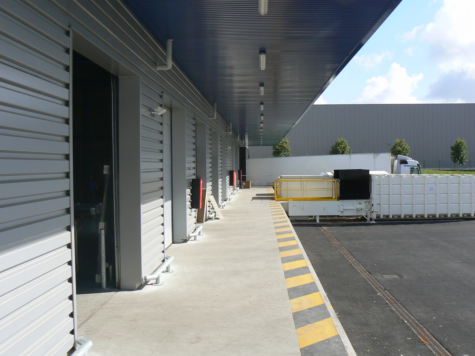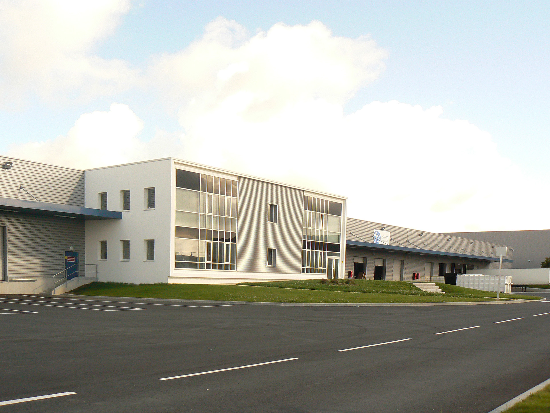 L’objet de ce projet est la réalisation d’une plateforme logistique et de stockage avec une partie de bureaux accueillant la gestion du site et le siège régional de l’entreprise. Il s’agit ici de travailler la monumentalité de l’ouvrage qui mesure 50m de large par 129m de long pour une hauteur de 9m afin qu’il s’intègre à son environnement. Le bâtiment articule les volumes et les couleurs et permet une lecture claire du programme en façades. La façade sur rue est une amorce de la façade principale où se déploient les quais et se trouve intégré le volume de bureaux qui ressort de l’enveloppe métallique de l’entrepôt.