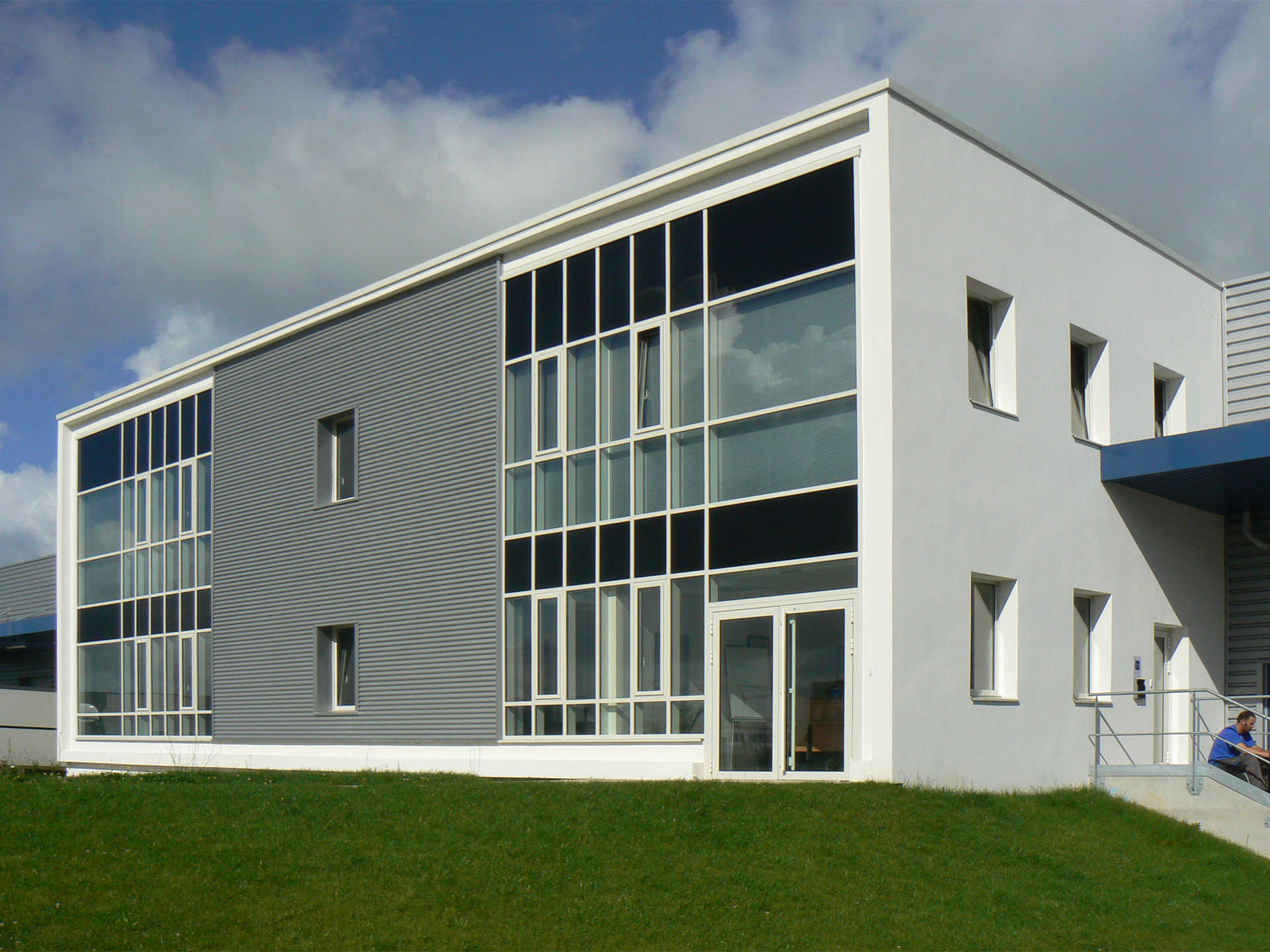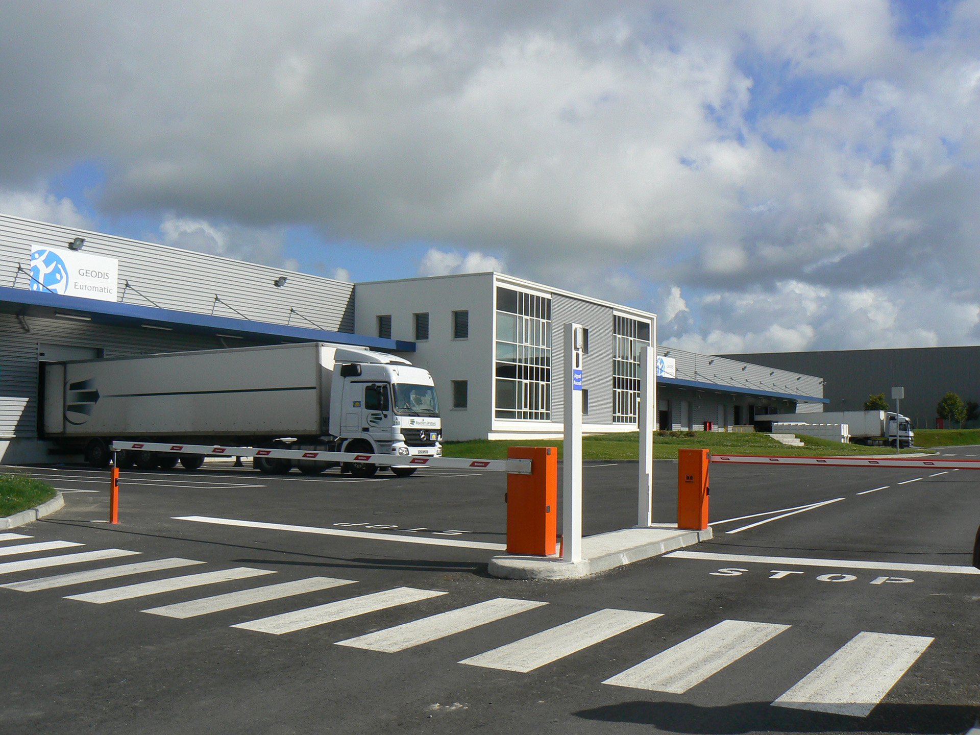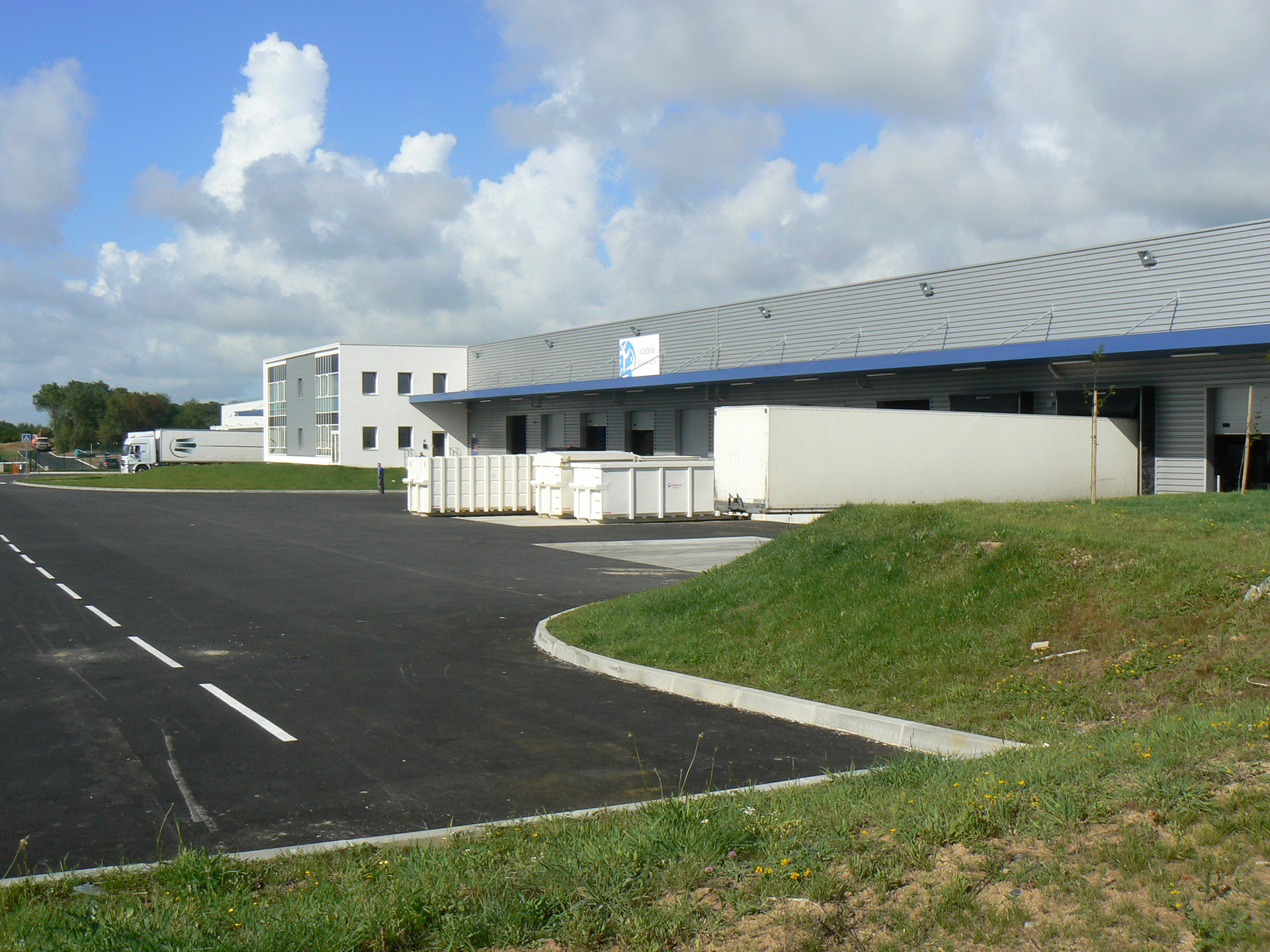 L’objet de ce projet est la réalisation d’une plateforme logistique et de stockage avec une partie de bureaux accueillant la gestion du site et le siège régional de l’entreprise. Il s’agit ici de travailler la monumentalité de l’ouvrage qui mesure 50m de large par 129m de long pour une hauteur de 9m afin qu’il s’intègre à son environnement. Le bâtiment articule les volumes et les couleurs et permet une lecture claire du programme en façades. La façade sur rue est une amorce de la façade principale où se déploient les quais et se trouve intégré le volume de bureaux qui ressort de l’enveloppe métallique de l’entrepôt.