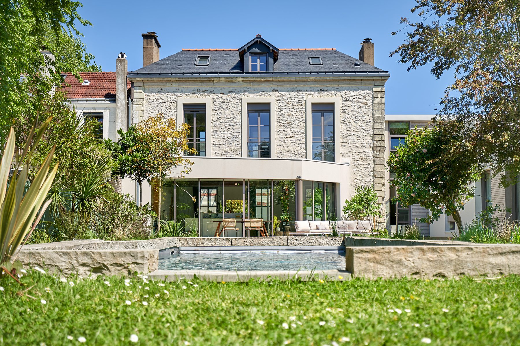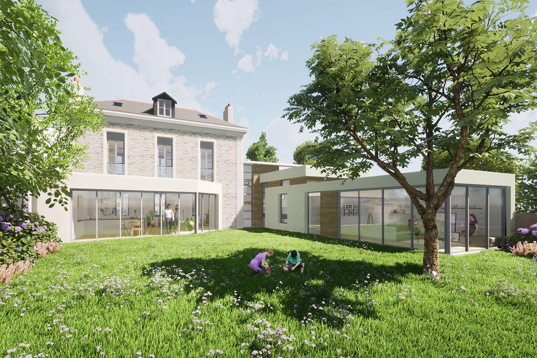 L’intention du projet est de rénover et de mettre en valeur la demeure existante du 19ème siècle. Un ensemble d’extension moderne en alignement sur rue se déploie vers le jardin pour accueillir l’ensemble du programme souhaité.