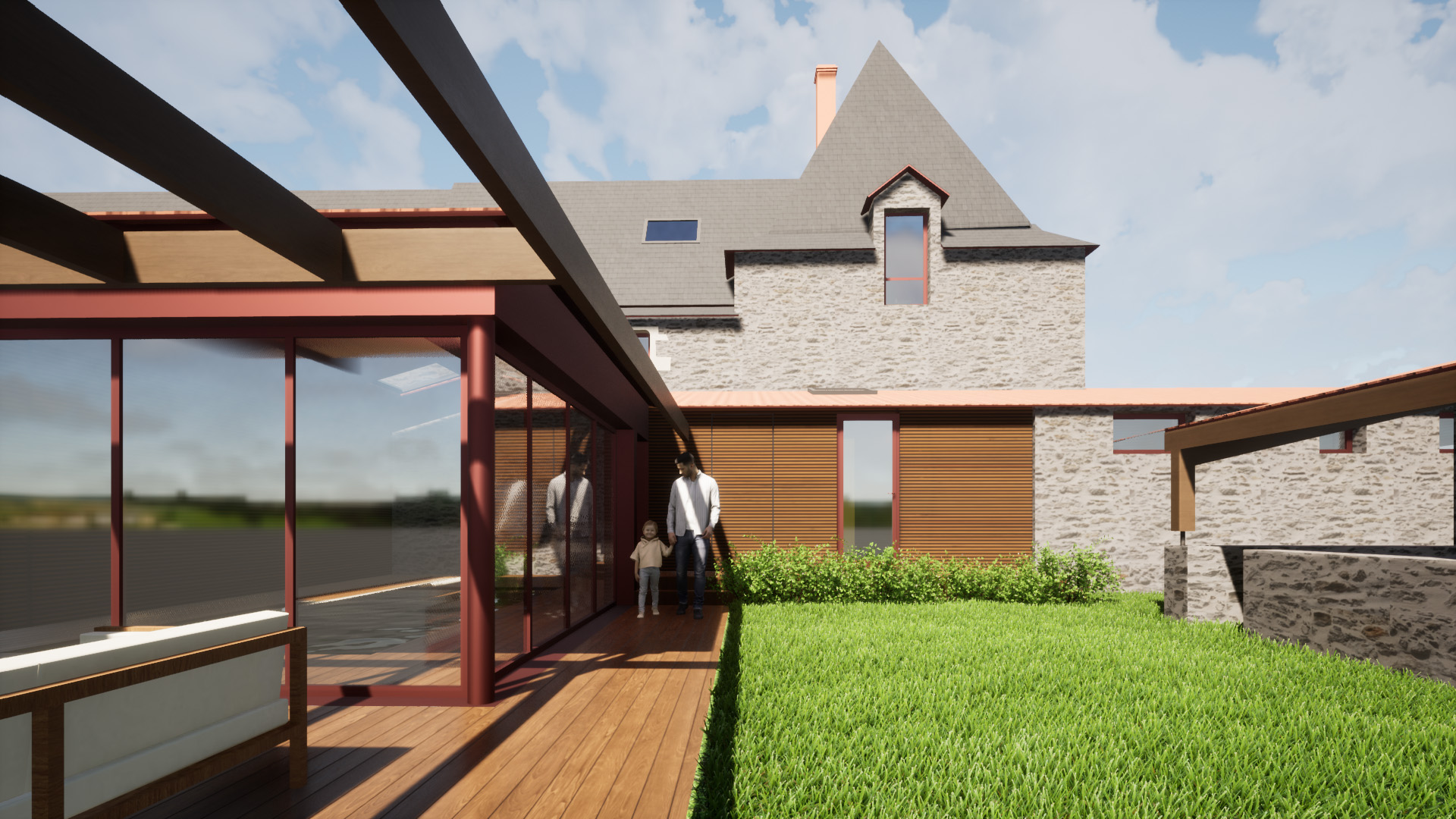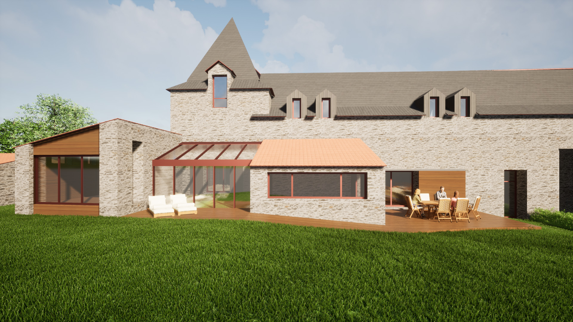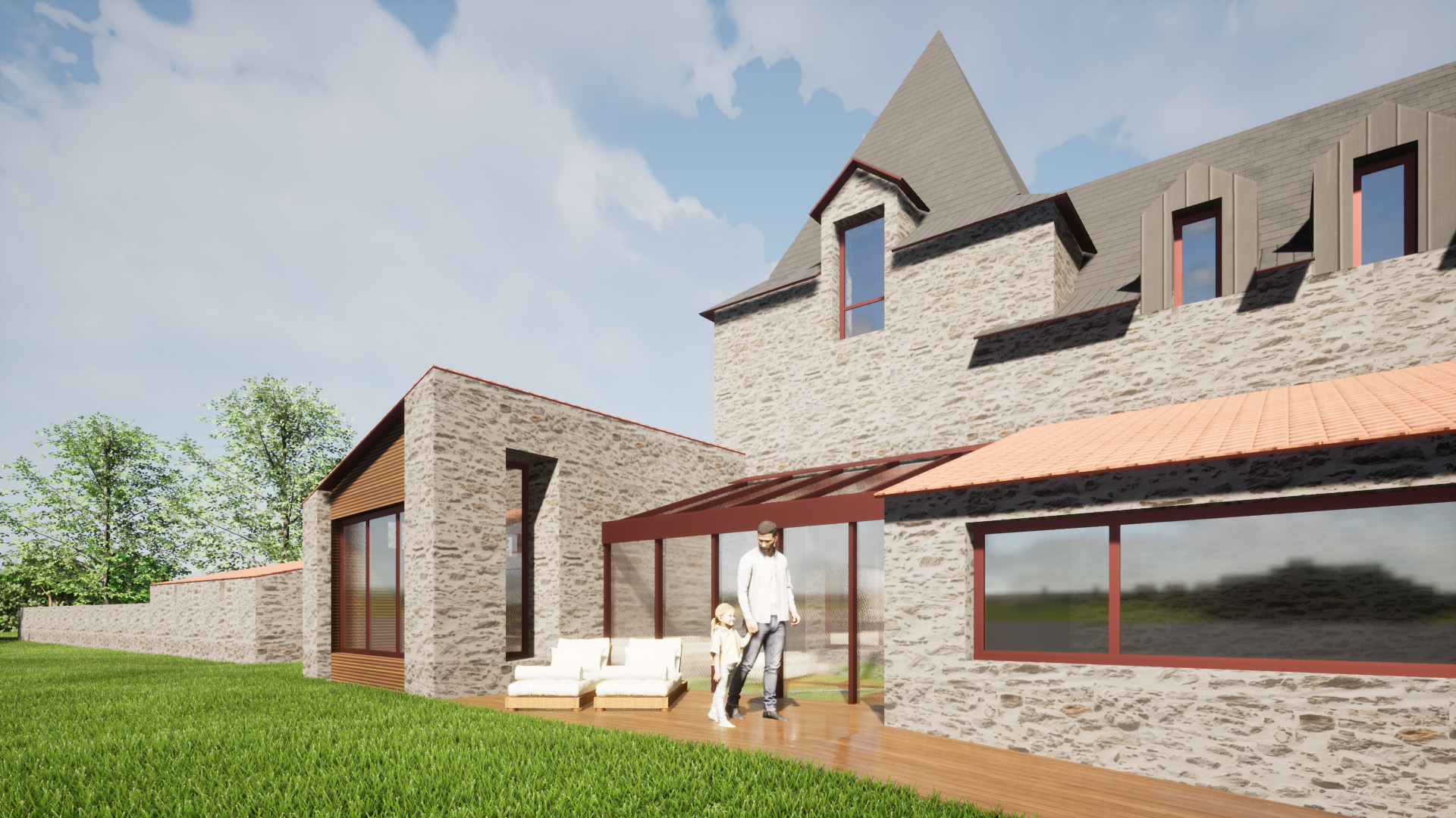 Le projet consiste en la rénovation et l’extension d’un manoir. Un espace bien-être est prévu avec une piscine et une salle de sport.