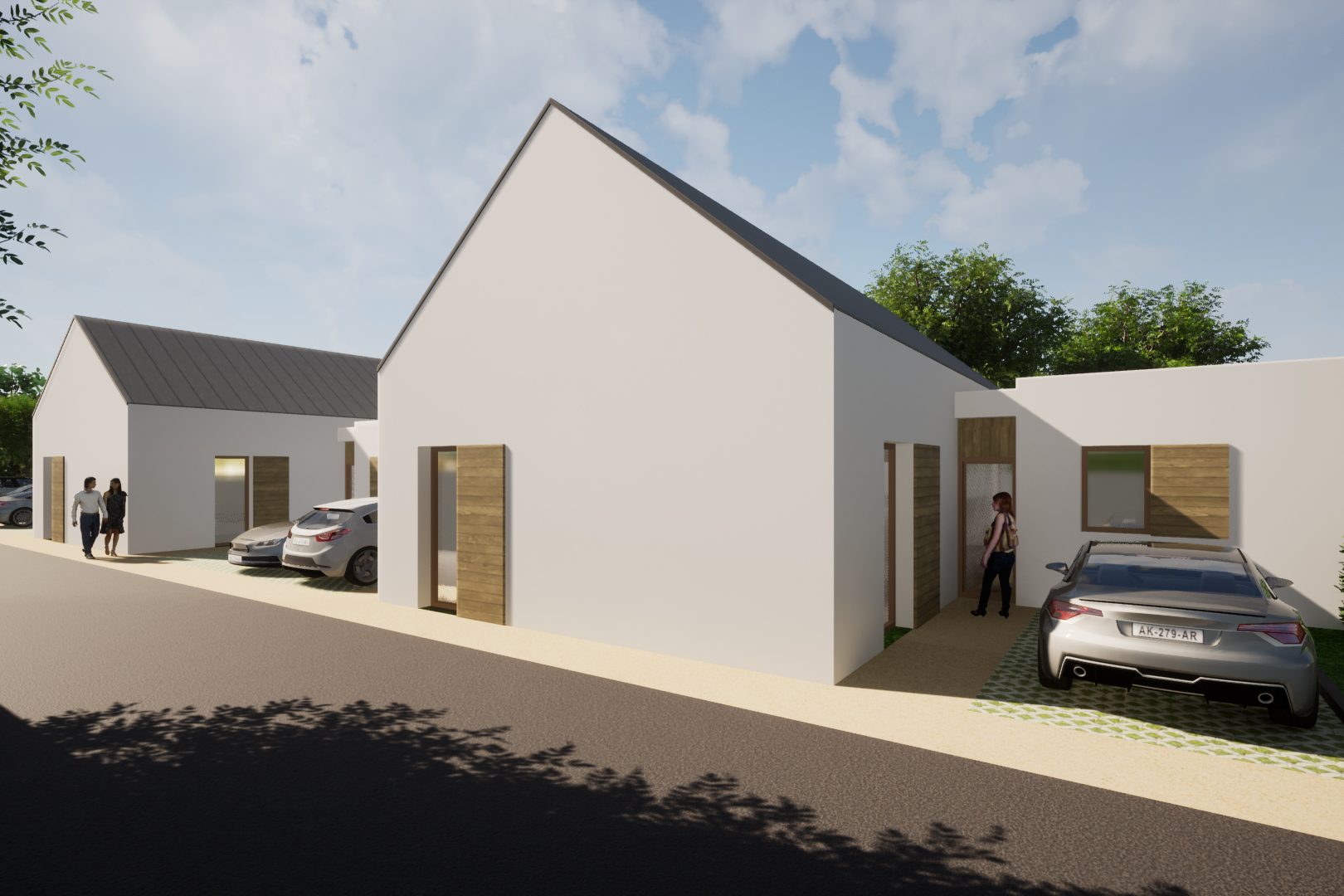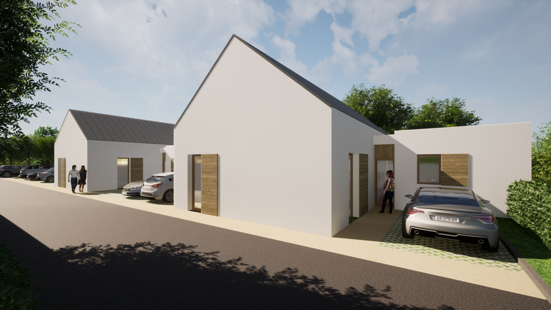 Le projet prévoit la réalisation d’un bâtiment composé de quatre cellules commerciales et de quatre maisons.