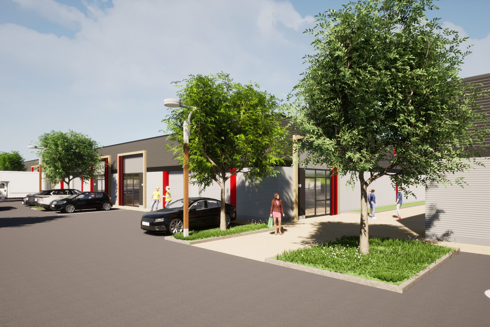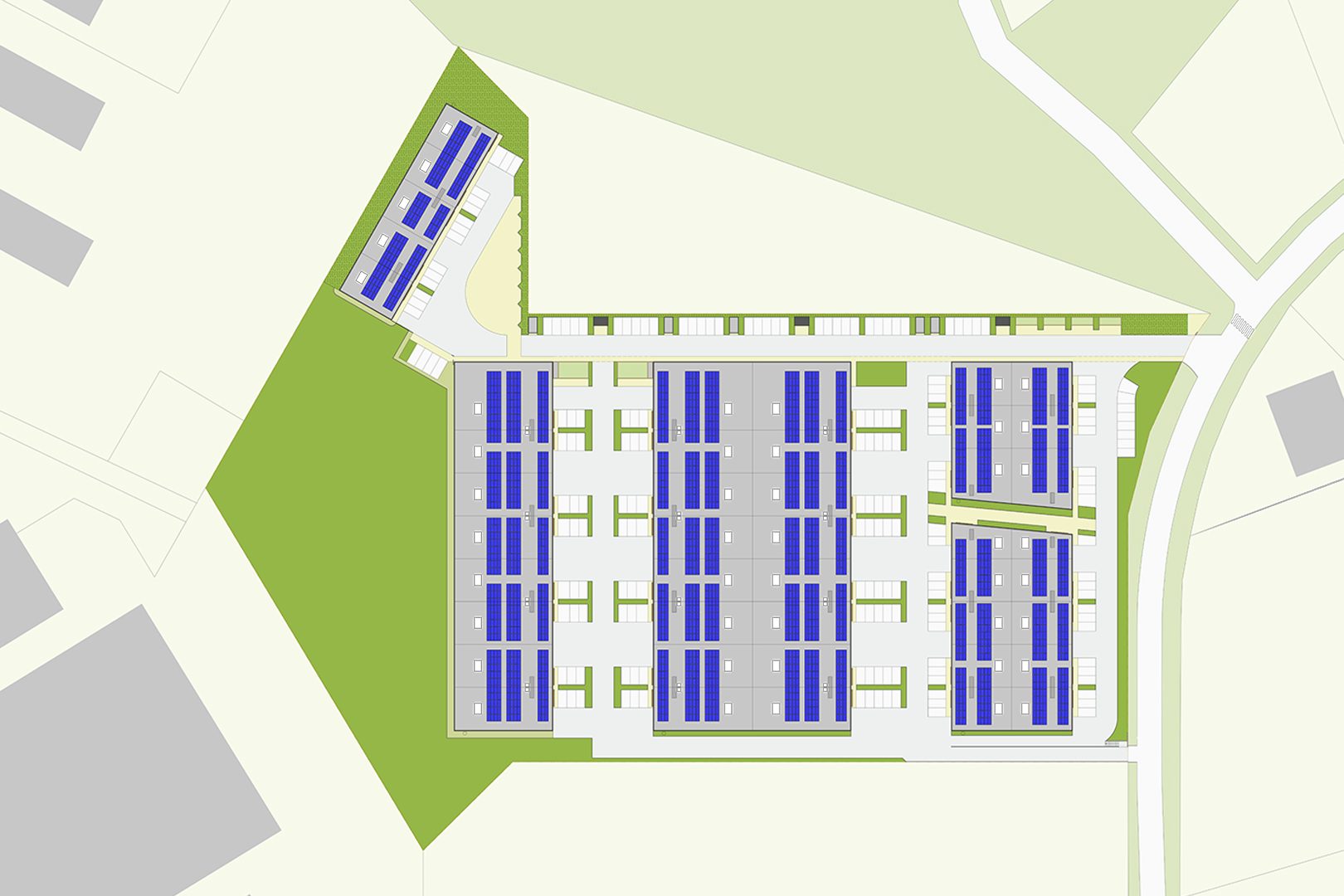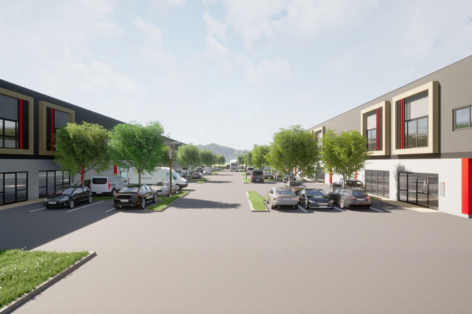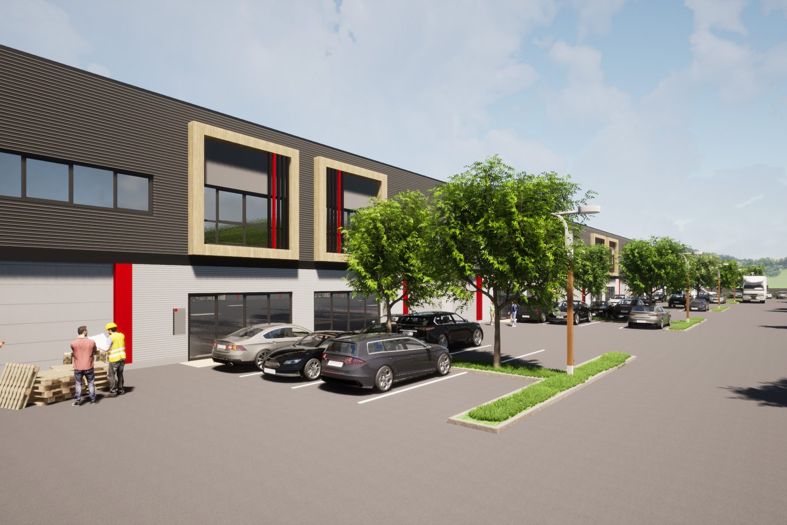 Le projet prévoit la construction de cinq bâtiments d’activités et de bureaux. Les bâtiments sont implantés parallèlement à la rue avec les plus bas au premier plan. L’aménagement des bâtiments suivants se fait dans l’alignement des deux premiers afin de créer une urbanisation cohérente comprenant également les espaces de circulation, les cheminements, les stationnements, les infrastructures mutualisables, la placette et les espaces plantés. L’organisation propose une mutualisation des espaces de circulation pouvant accueillir des poids lourds et favorise un usage confortable du site, notamment grâce au système de marche en avant. L’ensemble bâti s’intègre dans un environnement paysagé industriel et végétal par sa simplicité volumétrique, sa cohérence chromatique et permet une lecture épurée du site. L’implantation et l’organisation offre un cadre de qualité favorable au développement de l’activité.