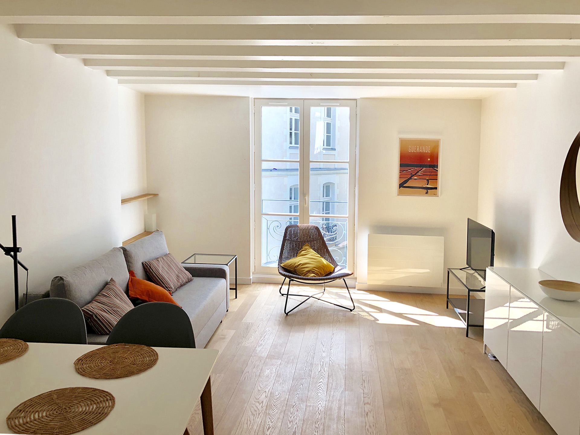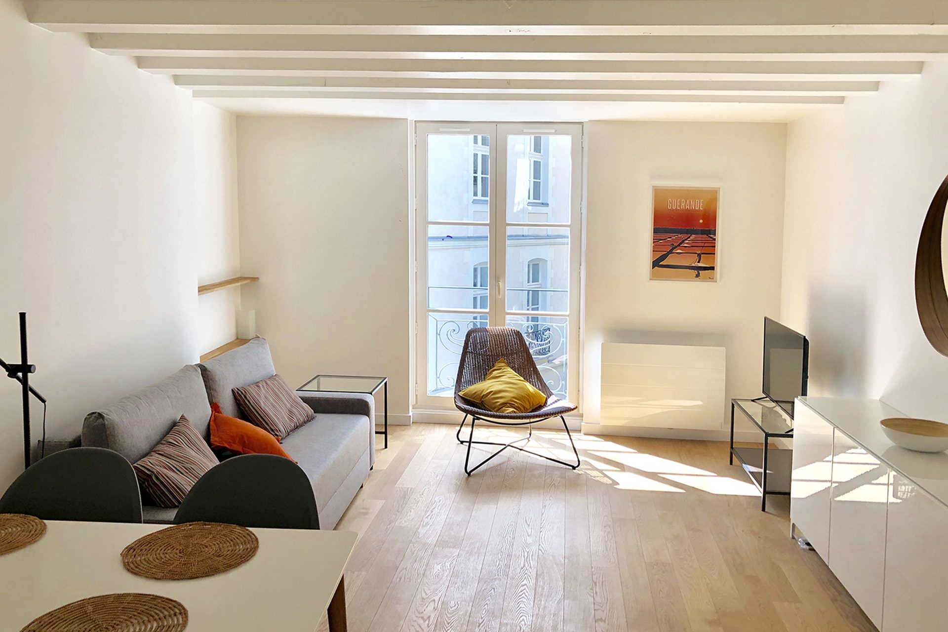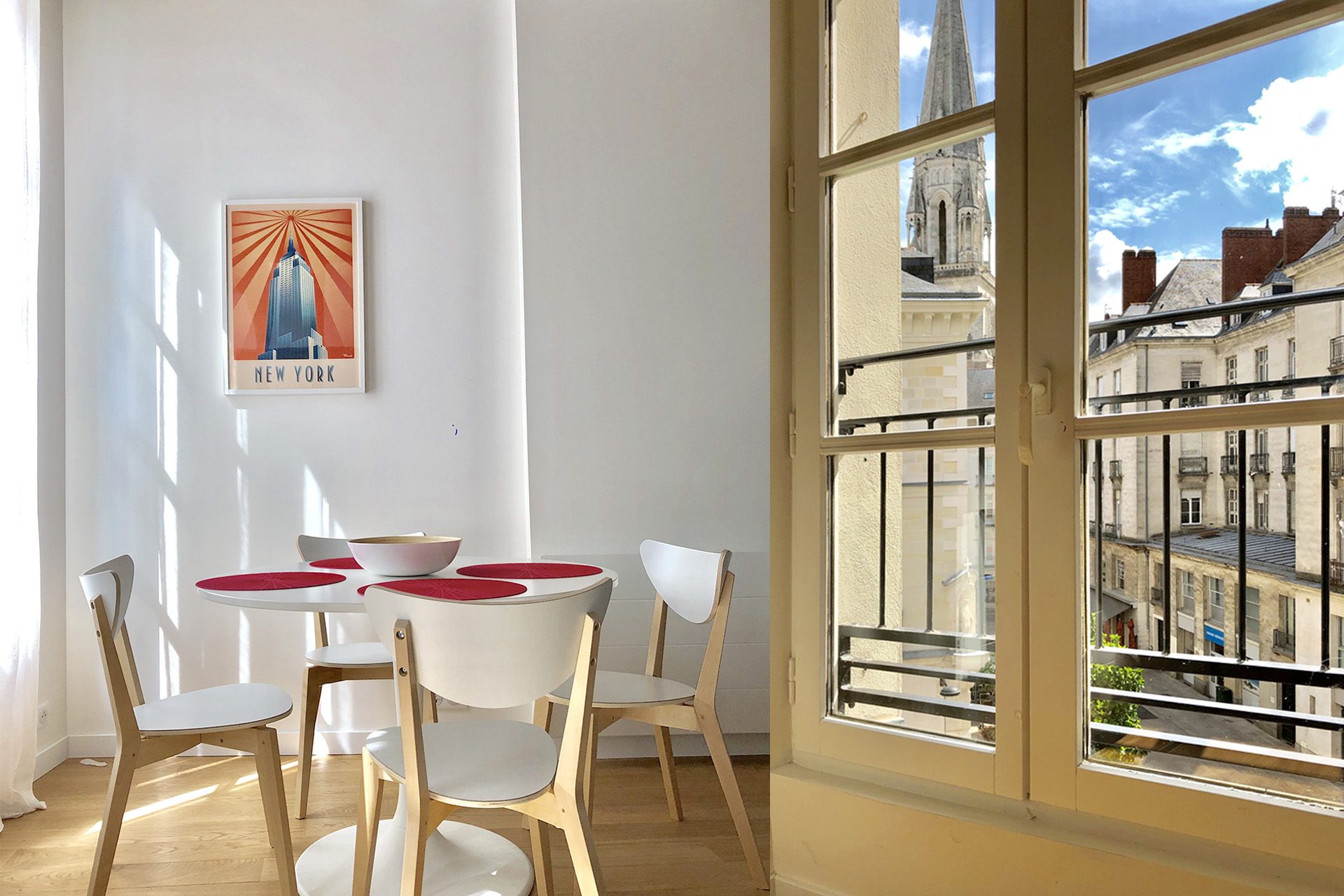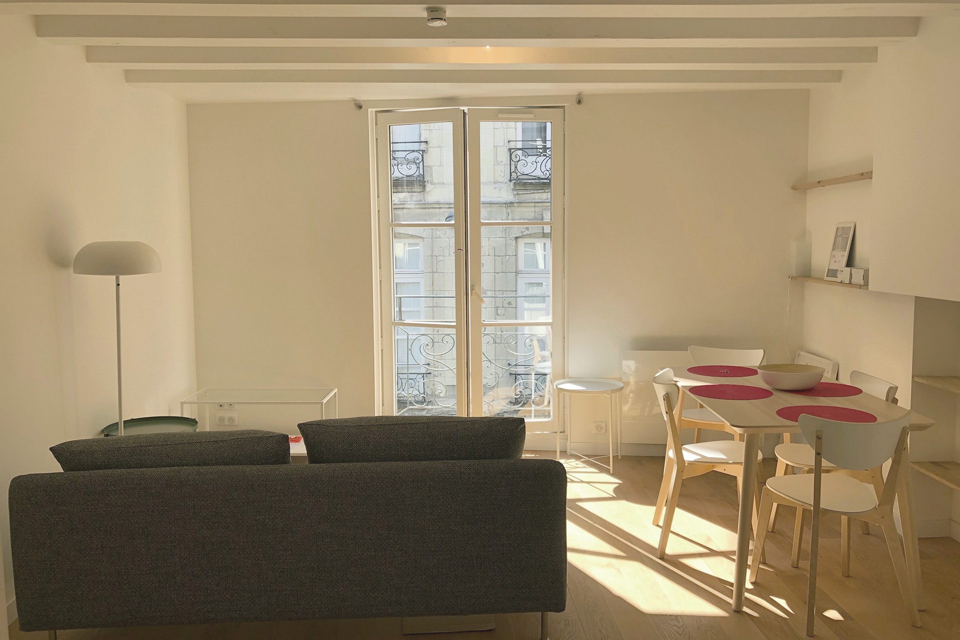 L’objet du projet est la restructuration d’un immeuble du XVIIIème siècle protégé dans le cadre du plan de sauvegarde de la Ville de Nantes. Le bâtiment était dans un état dégradé suite à un incendie causant notamment d’importants dégâts sur la structure. Les travaux ont permis une reprise de la structure, la rénovation des niveaux en respectant la trame d’origine et une mise en valeur des façades (reprises partielles, réouverture des fenêtres existantes en façades…). À cela s’ajoute la création de lucarnes en toiture dans le prolongement de la trame des façades pour offrir une amélioration de l’usage de l’immeuble dans le respect de l’esprit architectural du XVIIIème et du XIXème siècle.