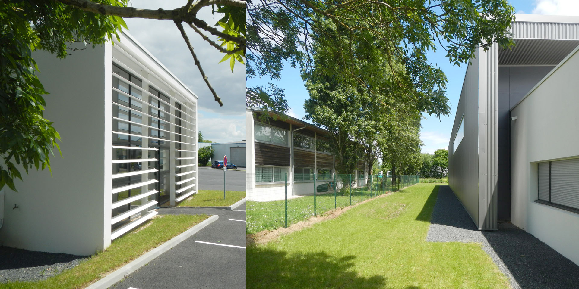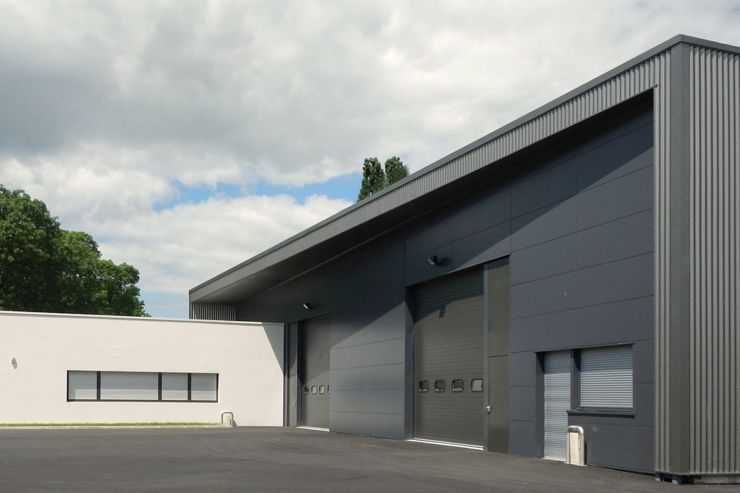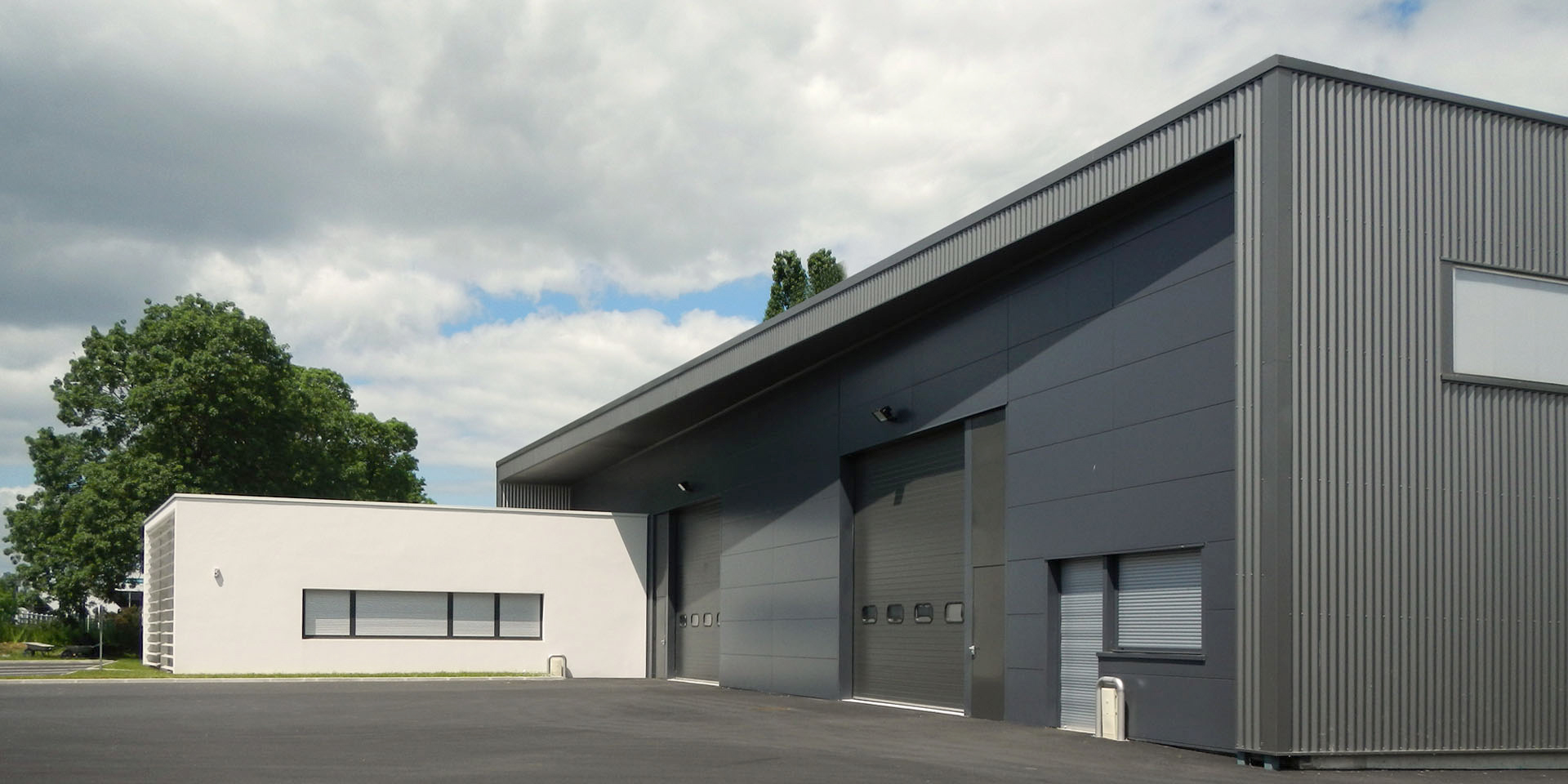 Le projet a permis la réalisation d’un bâtiment d’activités comportant trois cellules indépendantes avec chacune une partie entrepôt et une partie bureaux. L’architecture de l’ouvrage est très épurée. Deux volumes marquent l’entrée de la parcelle et organisent l’espace. Les deux volumes génèrent un jeu de composition grâce à leurs échelles différentes et à leur contraste colorimétrique.