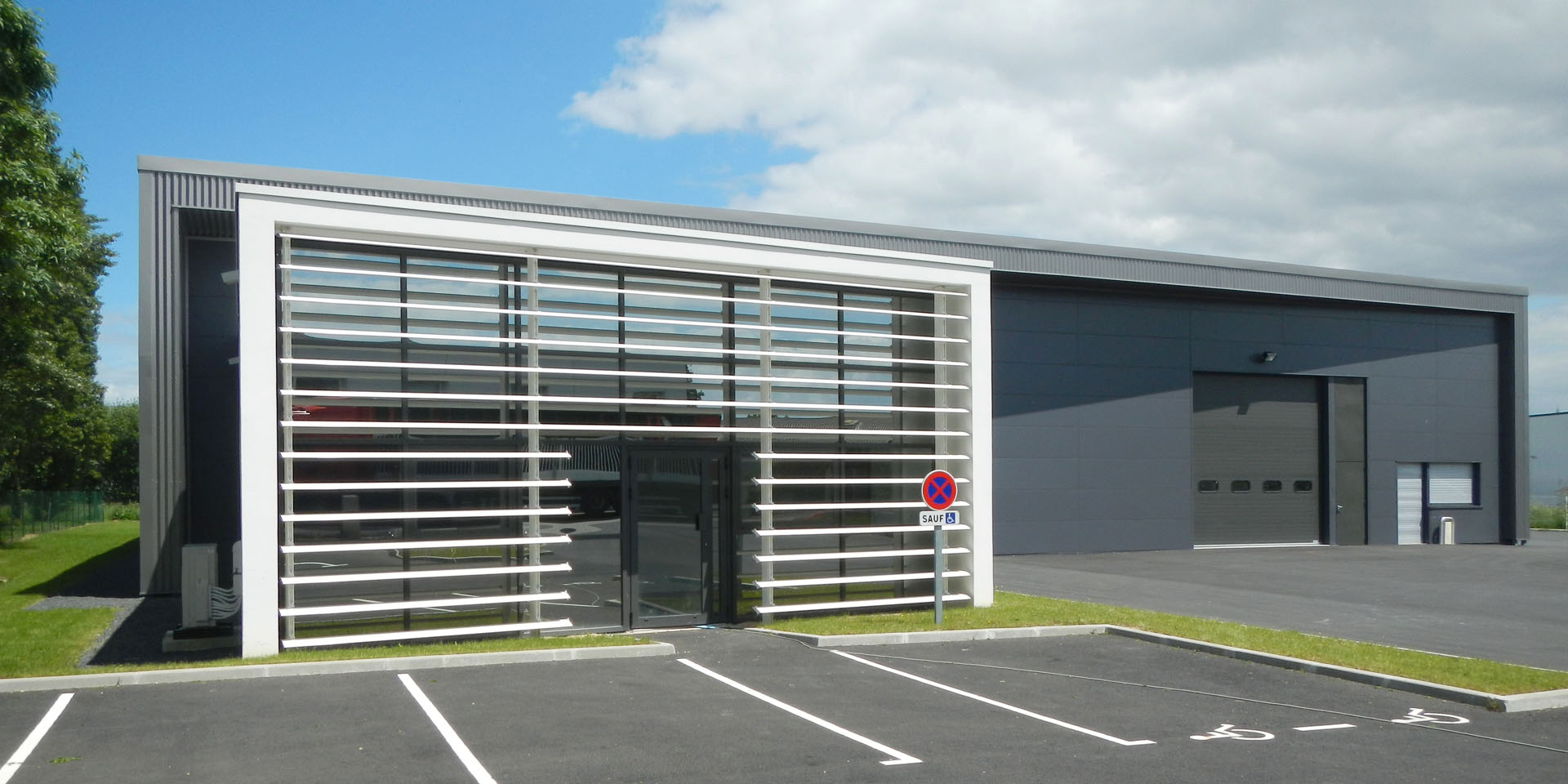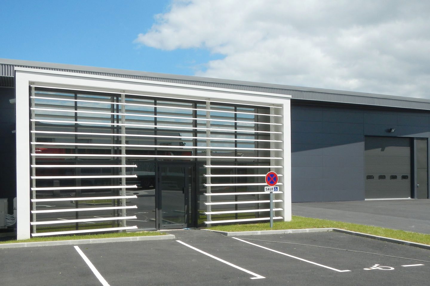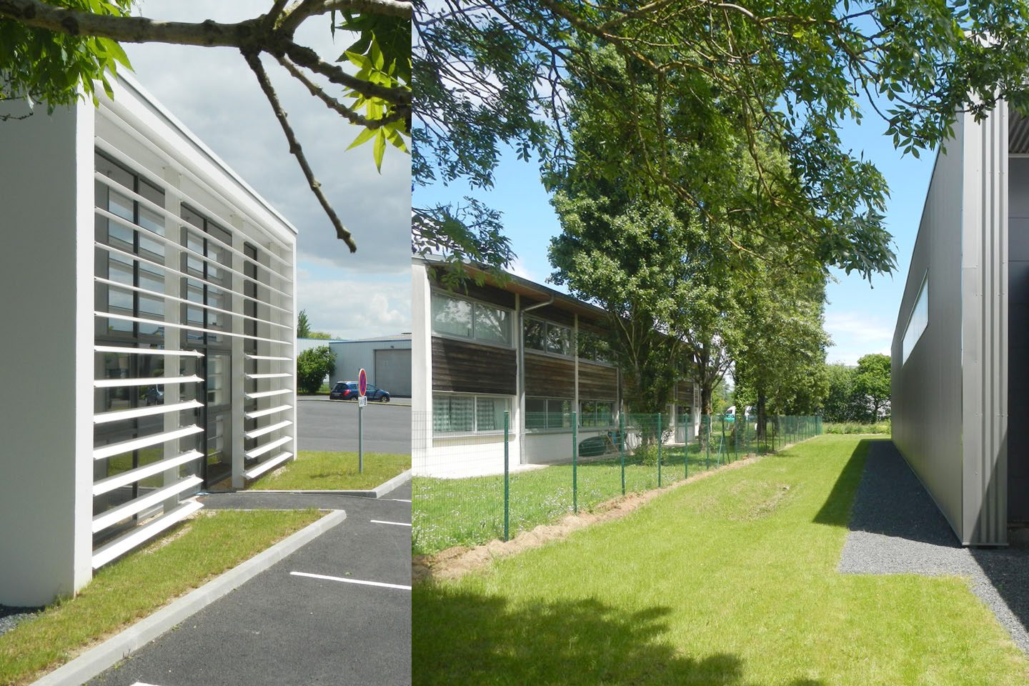 Le projet a permis la réalisation d’un bâtiment d’activités comportant trois cellules indépendantes avec chacune une partie entrepôt et une partie bureaux. L’architecture de l’ouvrage est très épurée. Deux volumes marquent l’entrée de la parcelle et organisent l’espace. Les deux volumes génèrent un jeu de composition grâce à leurs échelles différentes et à leur contraste colorimétrique.